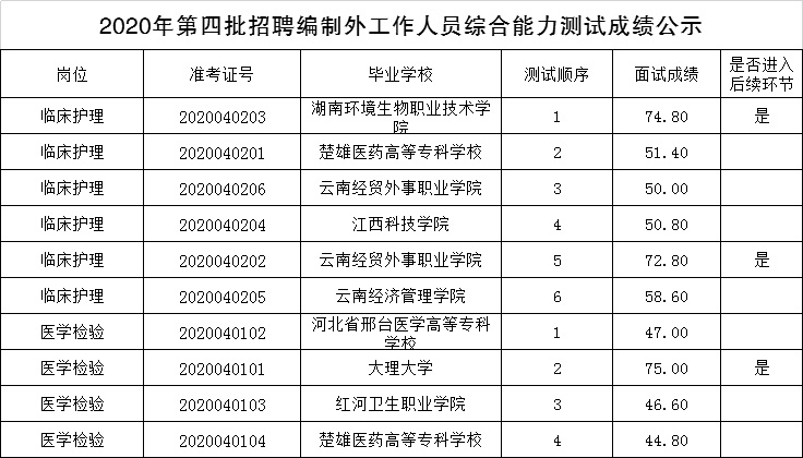 2020年第四批招聘編制外工作人員綜合能力測試成績公示