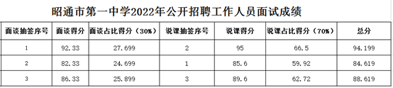附:昭通市第一中學(xué)2022年公開招聘工作人員面試成績