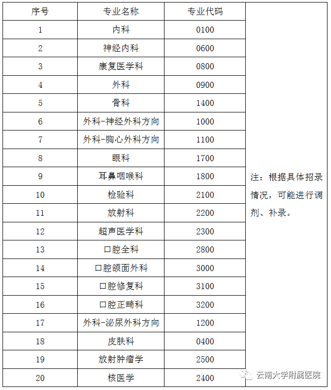 云南大學(xué)附屬醫(yī)院2022年住院醫(yī)師規(guī)范化培訓(xùn)招生通告