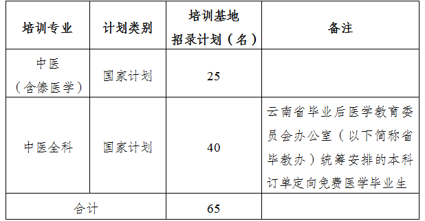 按照《關(guān)于開(kāi)展2022年云南省住院醫(yī)師規(guī)范化培訓(xùn)和助理全科醫(yī)生培訓(xùn)招生工作的通知》,我基地?cái)M招收中醫(yī)(含傣醫(yī)學(xué))、中醫(yī)全科培訓(xùn)專業(yè),招生專業(yè)及計(jì)劃招錄人數(shù)見(jiàn)下表。各專業(yè)錄取名額將根據(jù)報(bào)名情況和考試成績(jī)擇優(yōu)錄取。