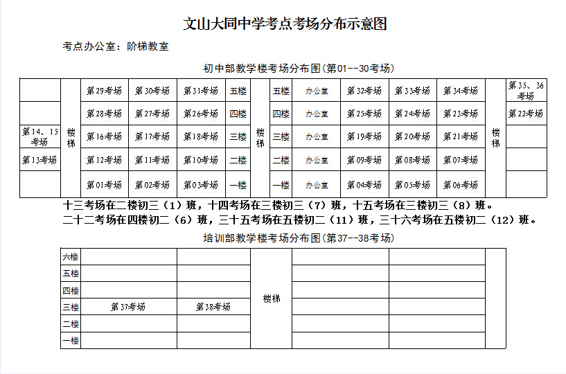 文山大同中學(xué)2015年公務(wù)員考點(diǎn)考場(chǎng)分布示意圖