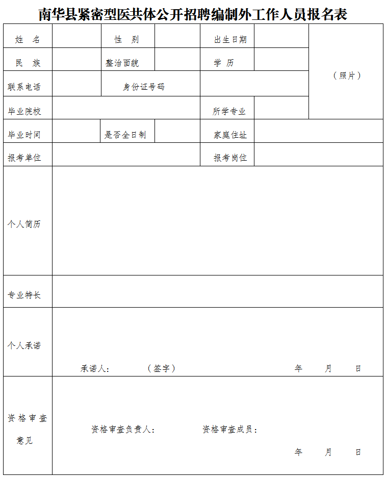 2.南華縣緊密型醫(yī)共體公開招聘編制外工作人員報(bào)名表