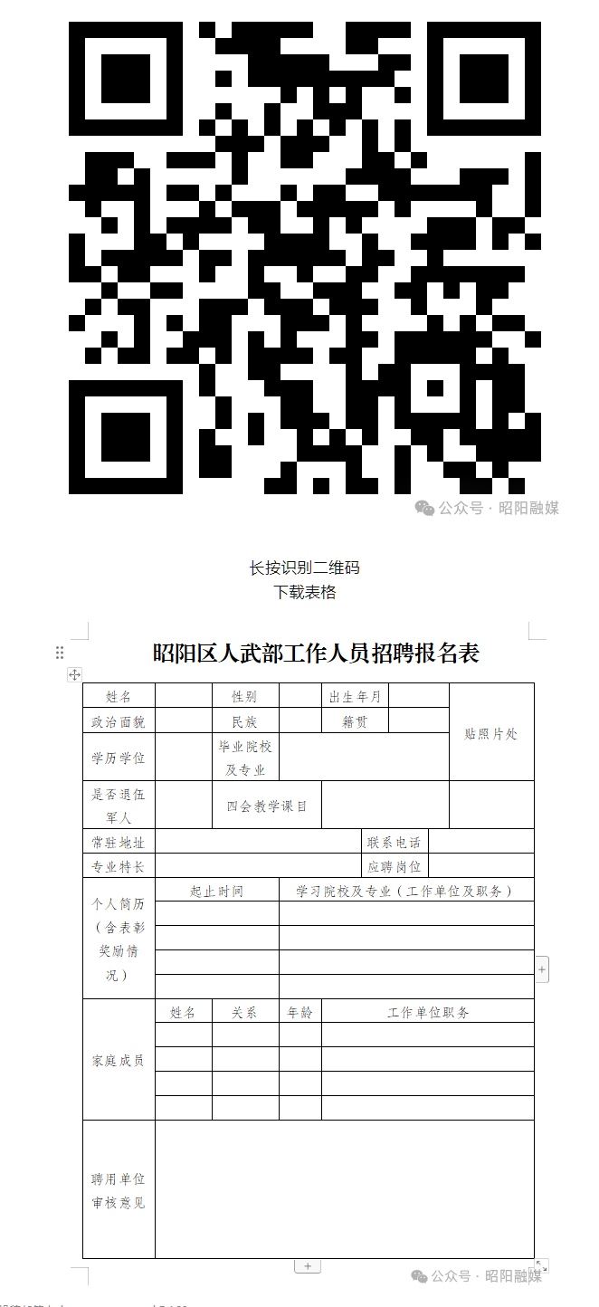 5.《昭陽區(qū)人武部工作人員招聘報(bào)名表》(見附件);