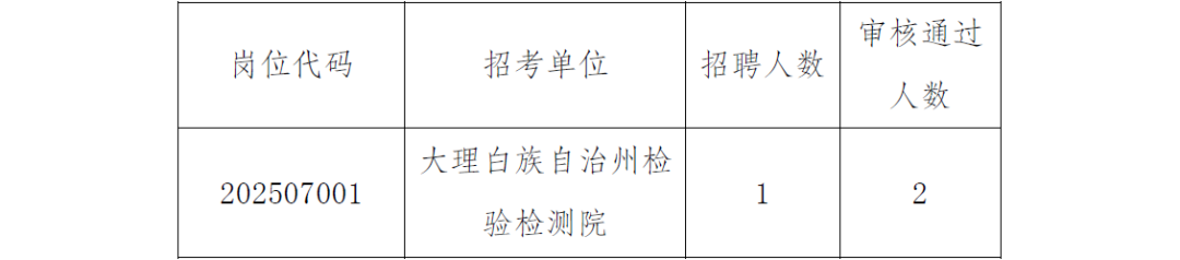 根據(jù)《大理州2025年事業(yè)單位公開考核招聘工作人員公告》相關(guān)要求,現(xiàn)將大理白族自治州檢驗(yàn)檢測院公開考核招聘報(bào)名情況及考試安排公告如下: