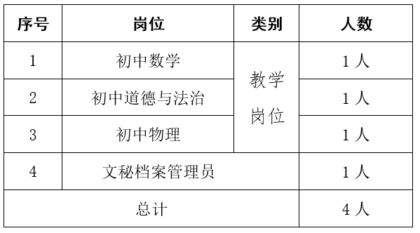 根據(jù)學(xué)校發(fā)展需要,決定面向社會招聘教師4人,具體如下: