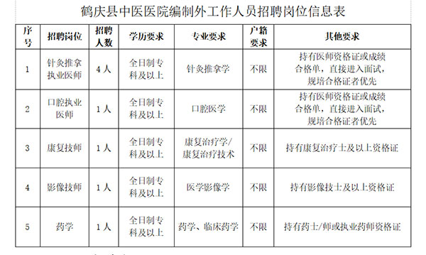 3.報(bào)名地點(diǎn):鶴慶縣中醫(yī)醫(yī)院辦公室(門診樓五樓)。