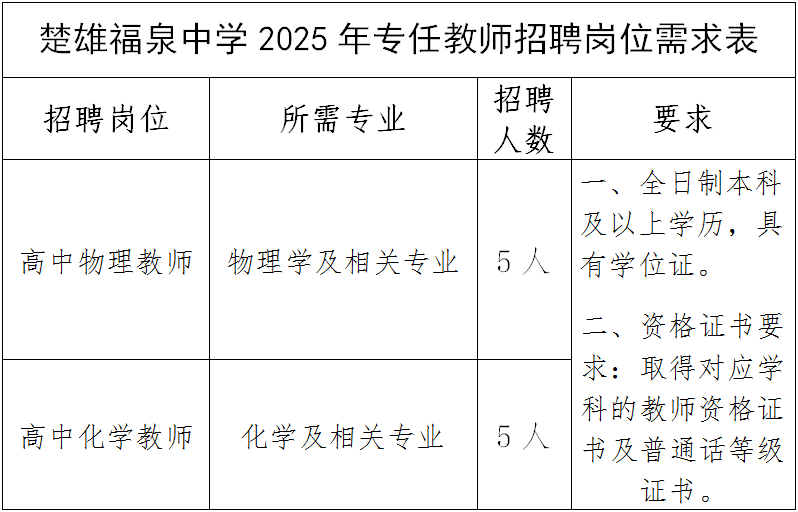 楚雄福泉中學(xué)關(guān)于2025年公開(kāi)招聘部分學(xué)科專(zhuān)任教師的公告(一)