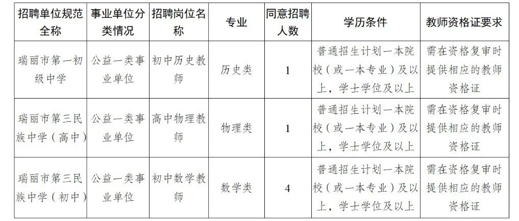 3.部分崗位學(xué)歷條件有變化的以《2025年德宏州教育部門(mén)考核招聘緊缺專業(yè)學(xué)科優(yōu)秀人才崗位計(jì)劃表》所列為準(zhǔn)。