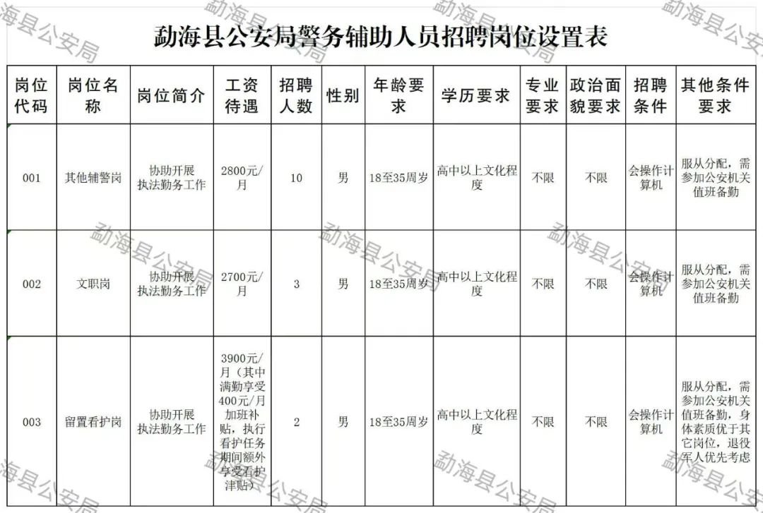 本次共招聘輔警15人,主要在勐海縣公安局內(nèi)設(shè)機(jī)構(gòu)從事執(zhí)法勤務(wù)等工作。輔警不具有人民警察和公務(wù)員身份,不行使人民警察職權(quán)。具體崗位見(jiàn)《勐??h公安局警務(wù)輔助人員招聘崗位設(shè)置表》