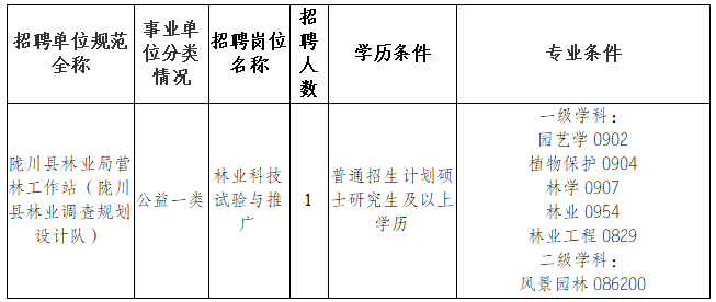 隴川縣林業(yè)局營林工作站專業(yè)技術(shù)人員1名,具體崗位及招聘條件等詳見下表。
