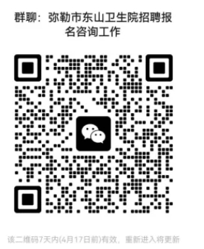 4.報名咨詢可添加:彌勒市東山衛(wèi)生院招聘報名咨詢工作群。