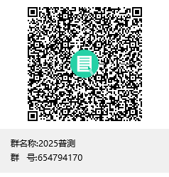 為方便社會考生咨詢測試事項(xiàng),請各位考生報名成功后請加入“2025普測”QQ群??赏ㄟ^搜索群號:654794170或QQ掃描群二維碼進(jìn)群。