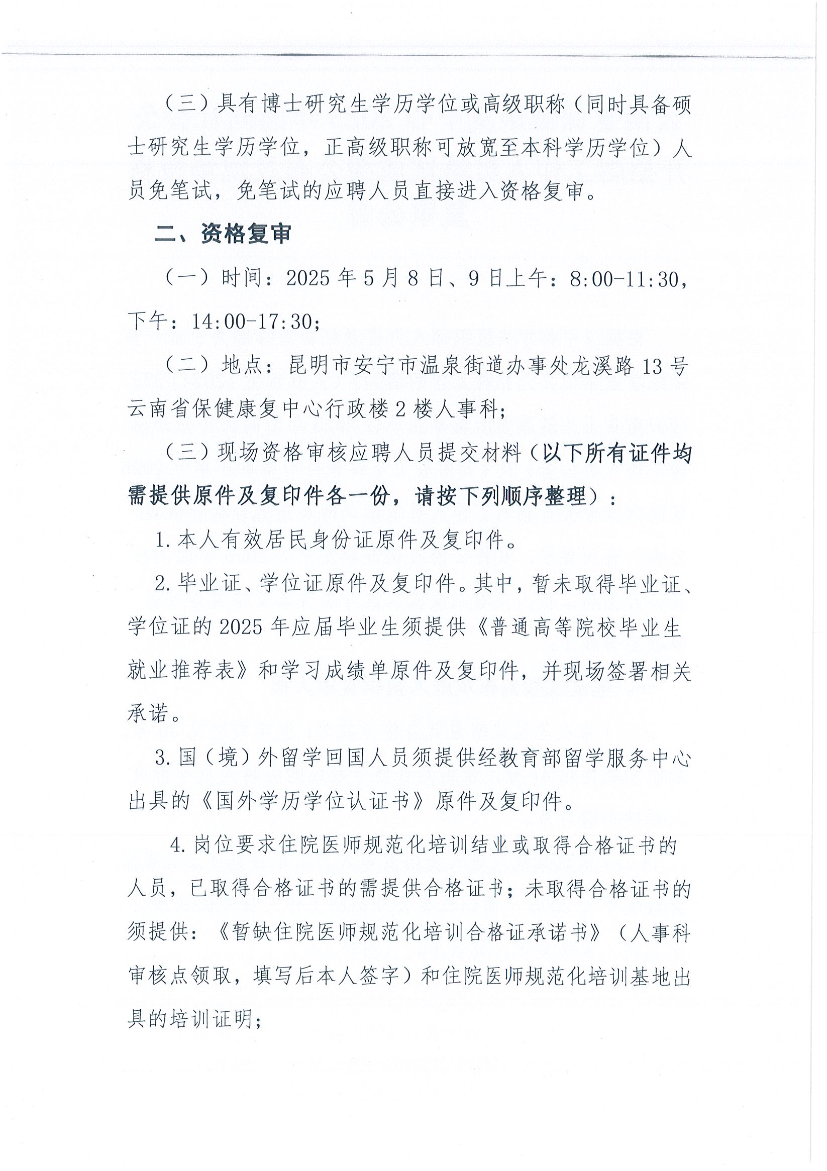 2025年云南省保健康復中心招聘筆試成績公布及現(xiàn)場資格復審公告