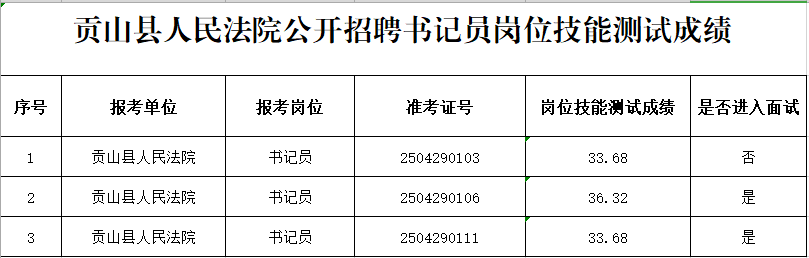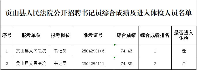 貢山縣人民法院公開招聘書記員崗位技能測試成績、綜合成績及體檢人員名單公告