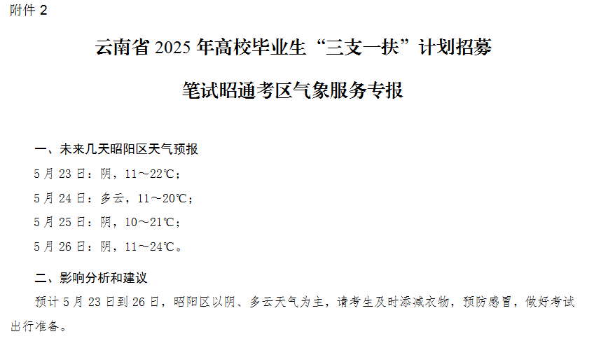 2.云南省2025年高校畢業(yè)生“三支一扶”計劃招募筆試昭通考區(qū)氣象服務專報