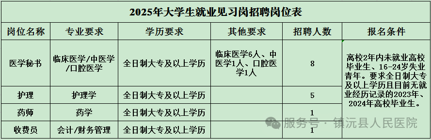 鎮(zhèn)沅縣人民醫(yī)院2025年第一批見習(xí)崗位人員招錄公告