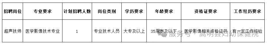 結(jié)合單位業(yè)務(wù)發(fā)展需要,擬定于2025年6月面向社會公開招聘編制外衛(wèi)生專業(yè)技術(shù)人員1名(超聲技師),現(xiàn)將有關(guān)事項公告如下: