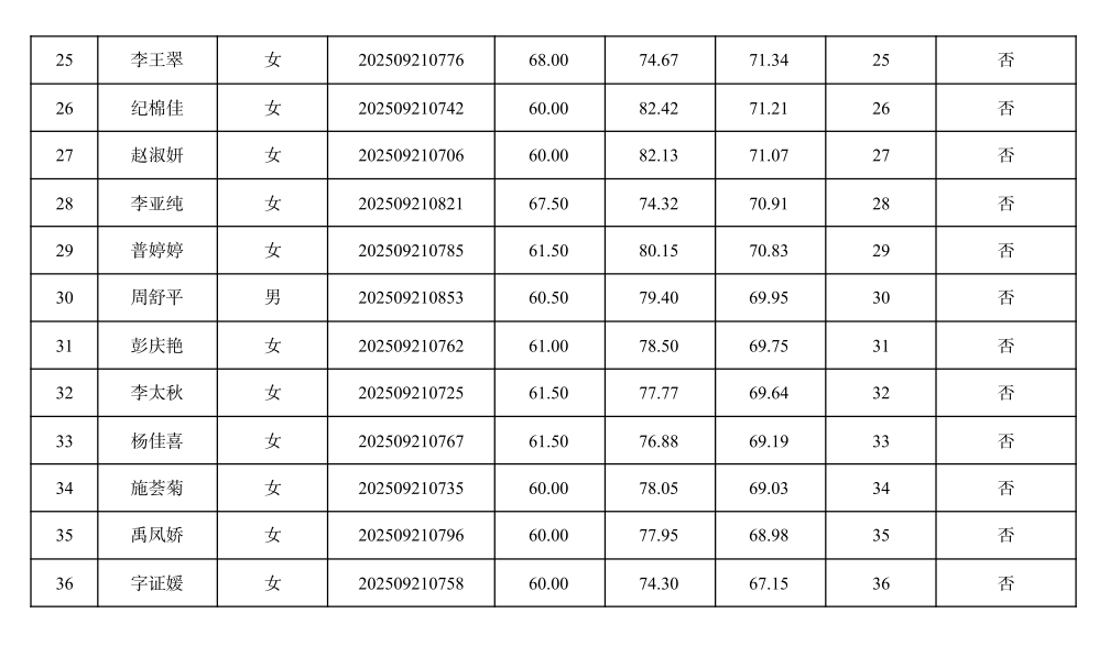 鳳慶縣2025-2026年度云南省大學(xué)生志愿服務(wù)西部計(jì)劃地方項(xiàng)目志愿者招募面試相關(guān)工作已結(jié)束,根據(jù)(筆試成績(jī)+面試成績(jī))×50%計(jì)算,現(xiàn)將綜合成績(jī)及體檢事宜公告如下: