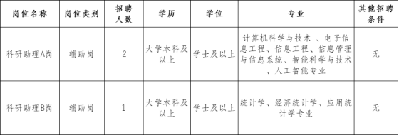 本次招聘計劃面向社會公開招聘非事業(yè)編制輔助崗(科研助理)工作人員3名。具體招聘條件見以下崗位計劃表: