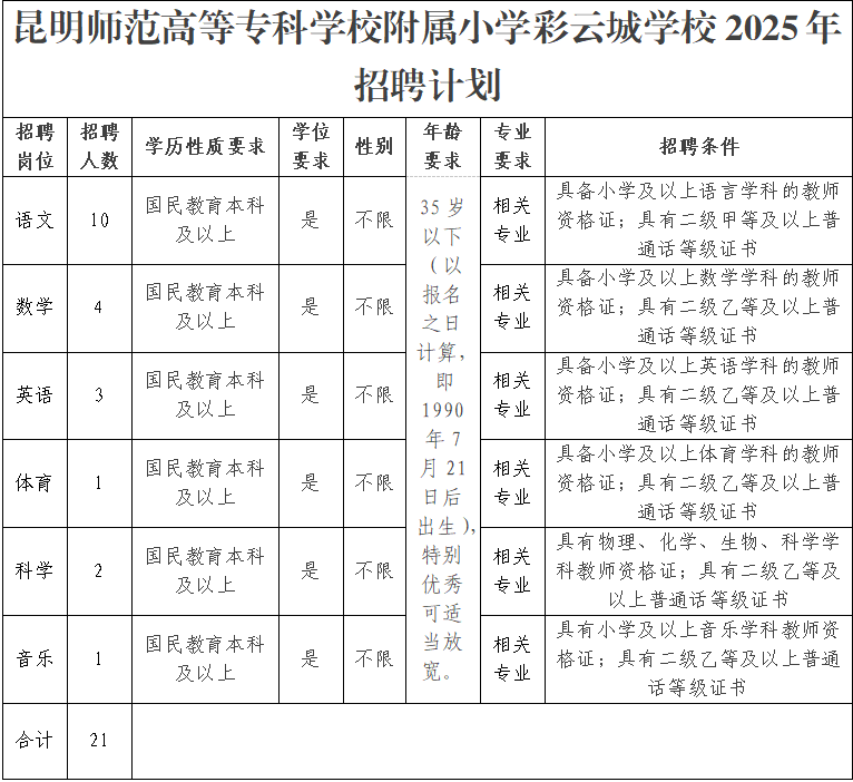 2.在考察或體檢中不合格的人員,由昆明師范高等專(zhuān)科學(xué)校附屬小學(xué)彩云城學(xué)校取消其聘用資格,并告知本人理由。因此產(chǎn)生的空缺從本崗位成績(jī)達(dá)60分以上的應(yīng)聘人員中,由高分到低分的順序依次遞補(bǔ)。