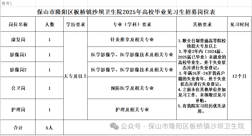 附件1:保山市隆陽區(qū)板橋鎮(zhèn)沙壩衛(wèi)生院2025年招聘見習(xí)人員崗位設(shè)置表.xlsx