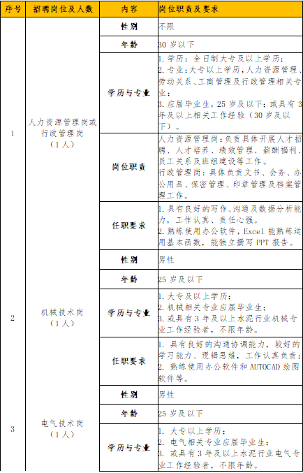2025年8月云南金江滄源水泥工業(yè)有限公司招聘公告