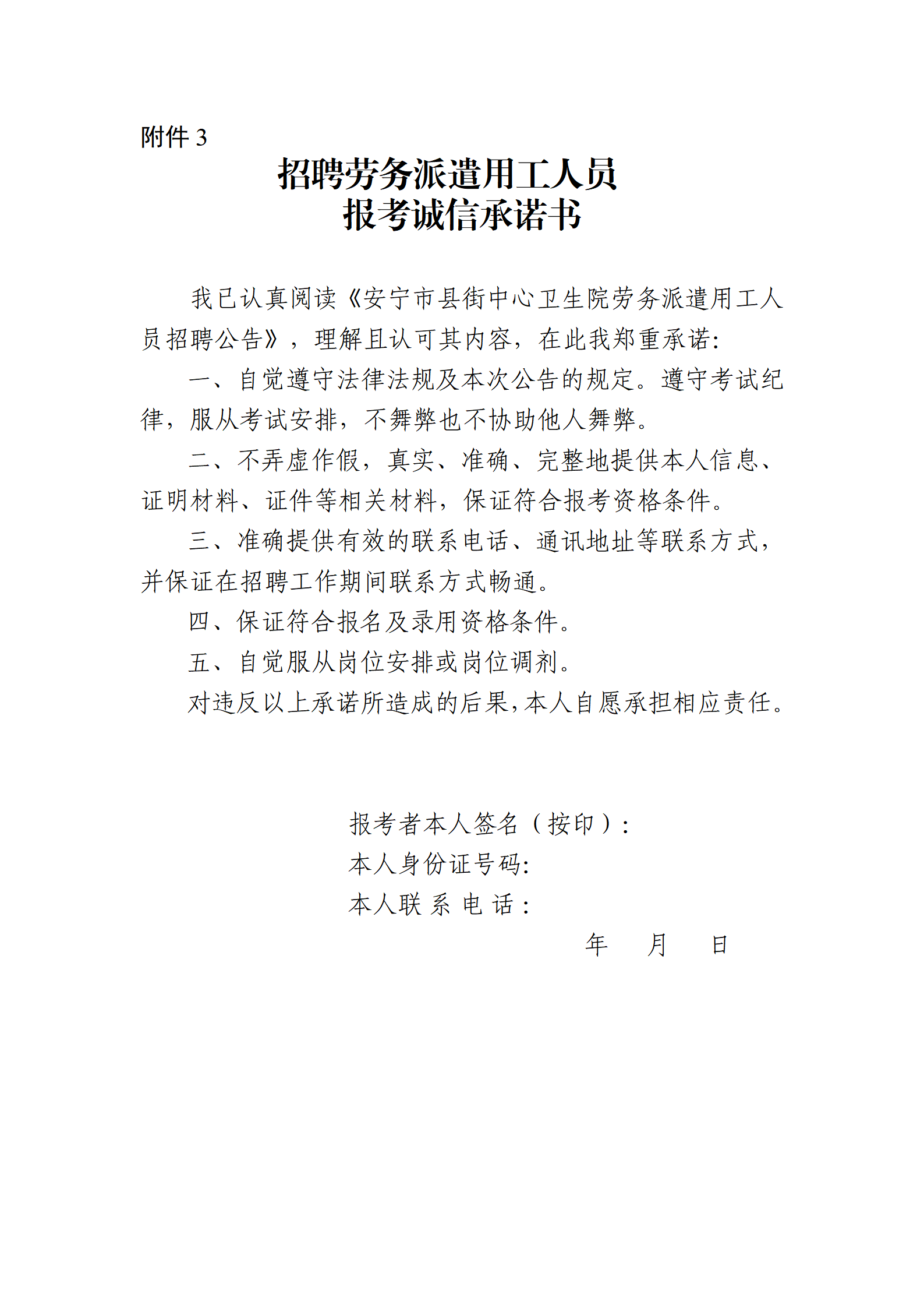 3.招聘勞務(wù)派遣用工人員報(bào)考誠(chéng)信承諾書