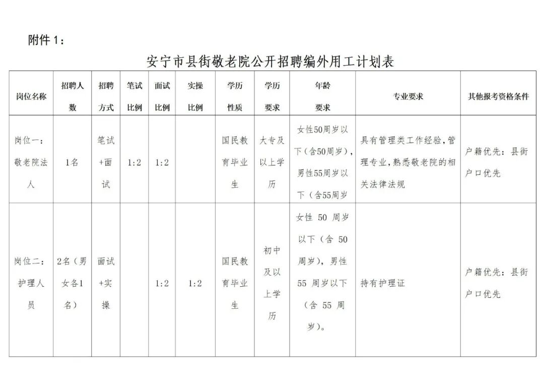 3. 年齡學(xué)歷要求:崗位一學(xué)歷要求大專及以上學(xué)歷,女性50周歲以下(含50周歲),男性55周歲以下(含55周歲);崗位二學(xué)歷要求初中及以上,女性50周歲以下(含50周歲),男性55周歲以下(含55周歲),有護(hù)理證。