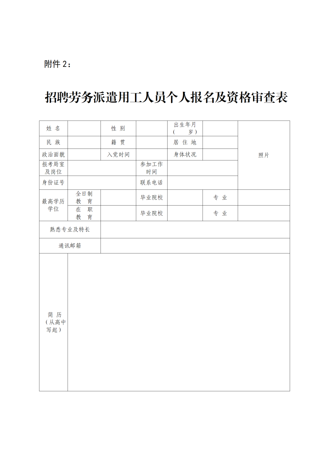 2.招聘勞務(wù)派遣用工人員個(gè)人報(bào)名及資格審查表