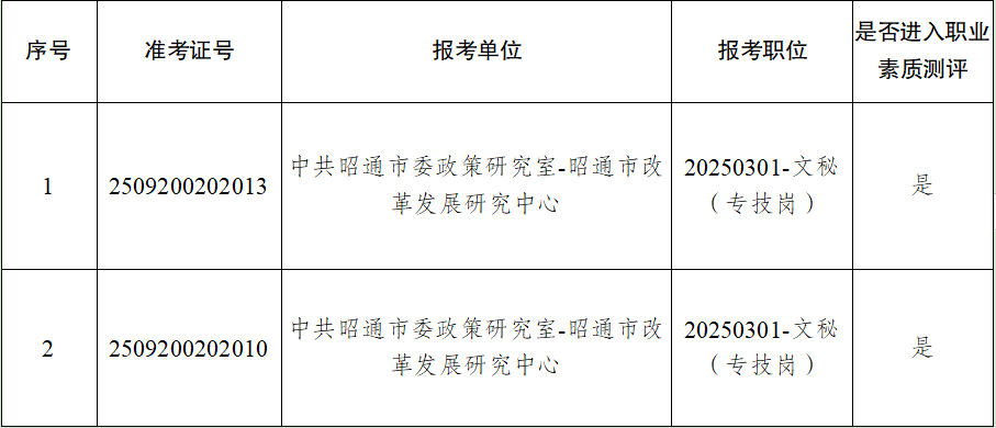 昭通市改革發(fā)展研究中心2025年公開選調(diào)工作人員職業(yè)素質(zhì)測(cè)評(píng)人員名單