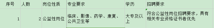 招聘2人:公益性崗位,具體要求詳見下表: