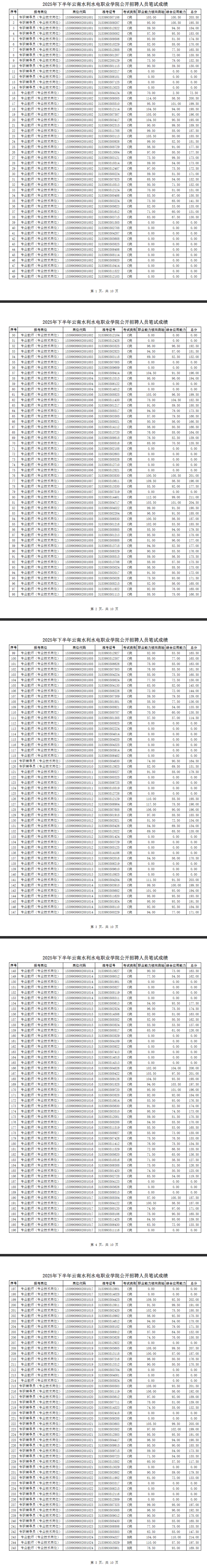 附件:2025年下半年云南水利水電職業(yè)學(xué)院公開招聘人員筆試成績