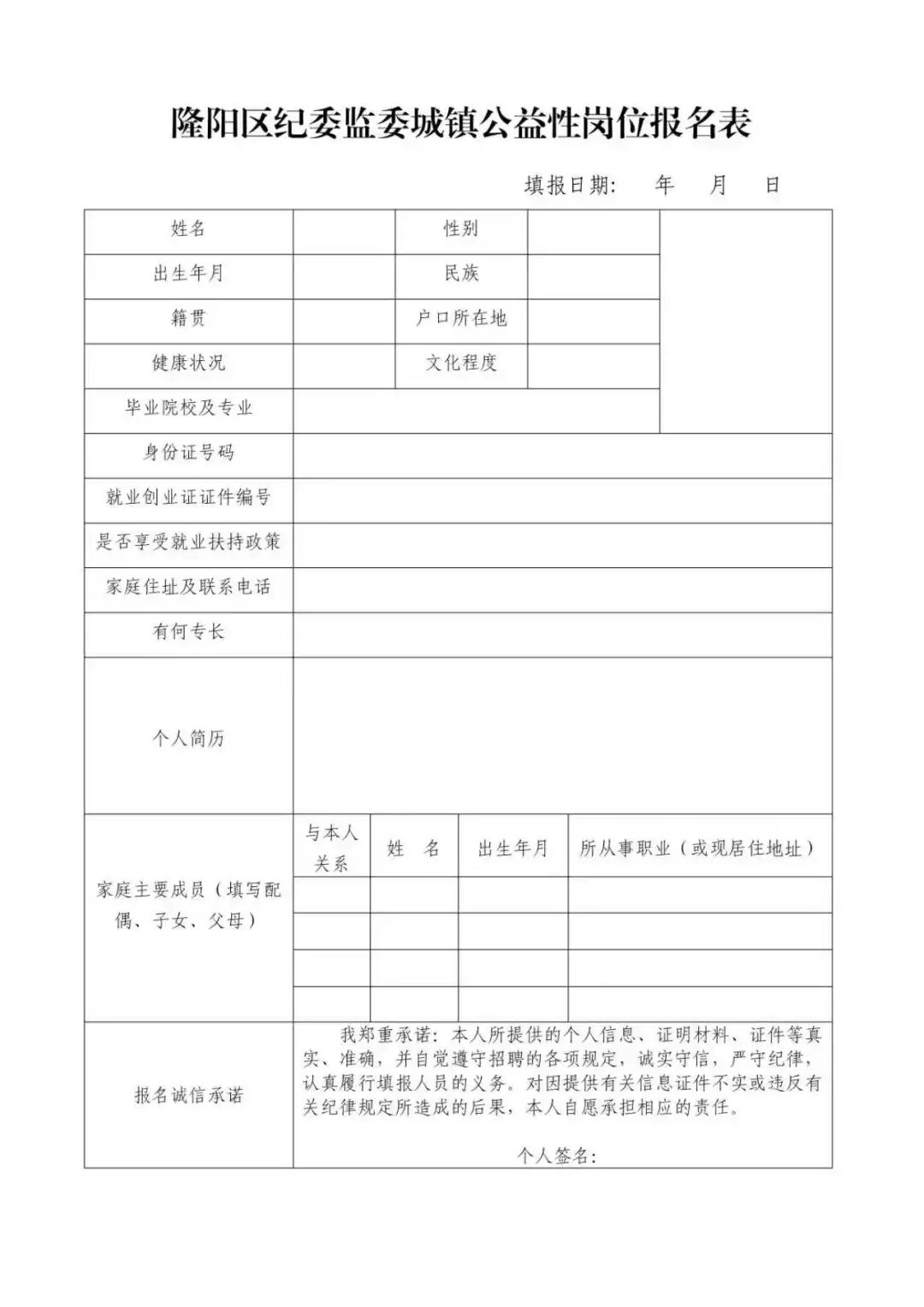 附件:隆陽(yáng)區(qū)紀(jì)委監(jiān)委城鎮(zhèn)公益性崗位報(bào)名表