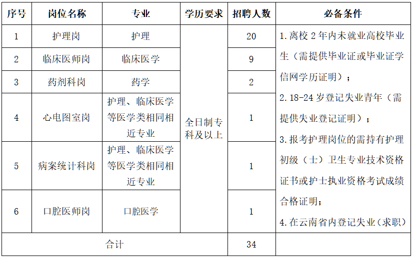 根據(jù)相關(guān)政策及醫(yī)院業(yè)務(wù)需求,現(xiàn)公開招錄見習(xí)崗人員34名,具體事宜如下: