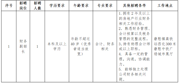此次面向社會公開招聘財務(wù)部副部長1人。