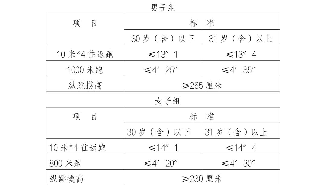 體能測(cè)試內(nèi)容及標(biāo)準(zhǔn)參照《公安機(jī)關(guān)錄用人民警察體能測(cè)評(píng)項(xiàng)目和標(biāo)準(zhǔn)(暫行)》(人社部發(fā)〔2011〕48號(hào))執(zhí)行。