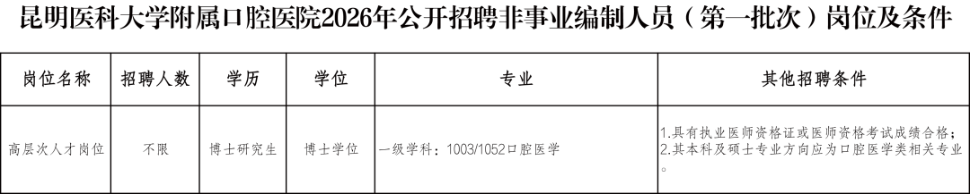 1.《昆明醫(yī)科大學(xué)附屬口腔醫(yī)院公開招聘非事業(yè)編制人員報名表》(附件);