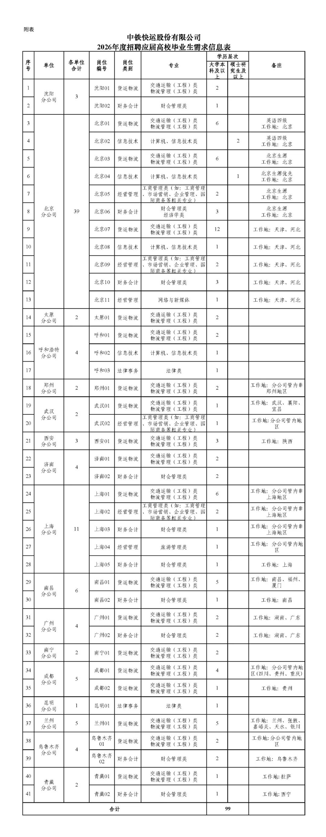 中鐵快運(yùn)股份有限公司2026年招聘高校畢業(yè)生公告