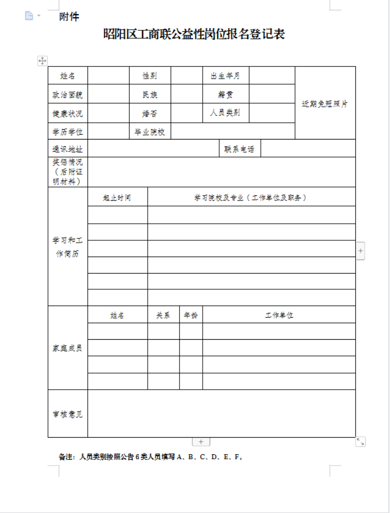附件:昭陽區(qū)工商聯(lián)公益性崗位報名登記表