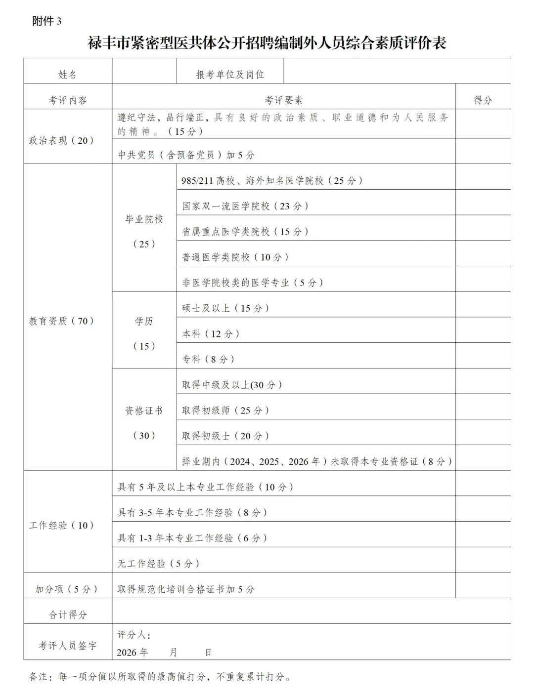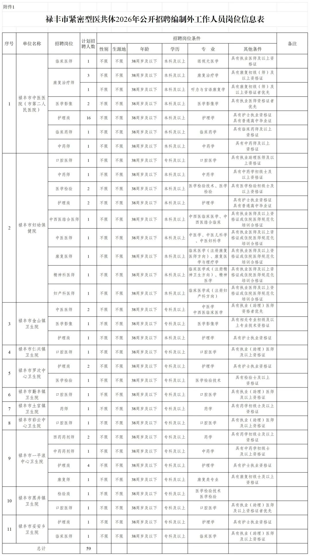 附件:1. 祿豐市緊密型醫(yī)共體2026年公開(kāi)招聘編外工作人員崗位信息表