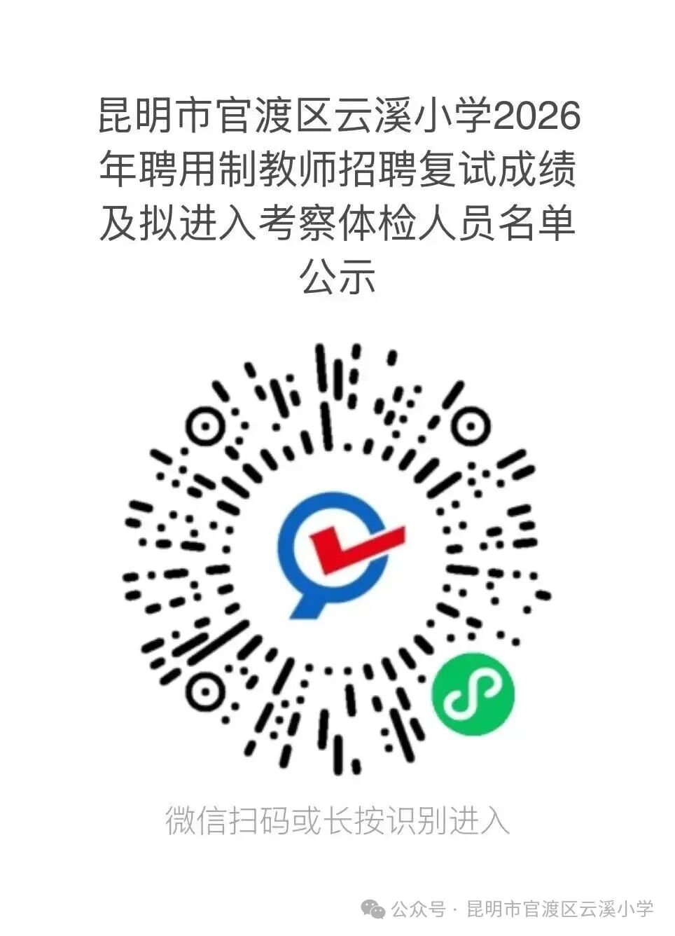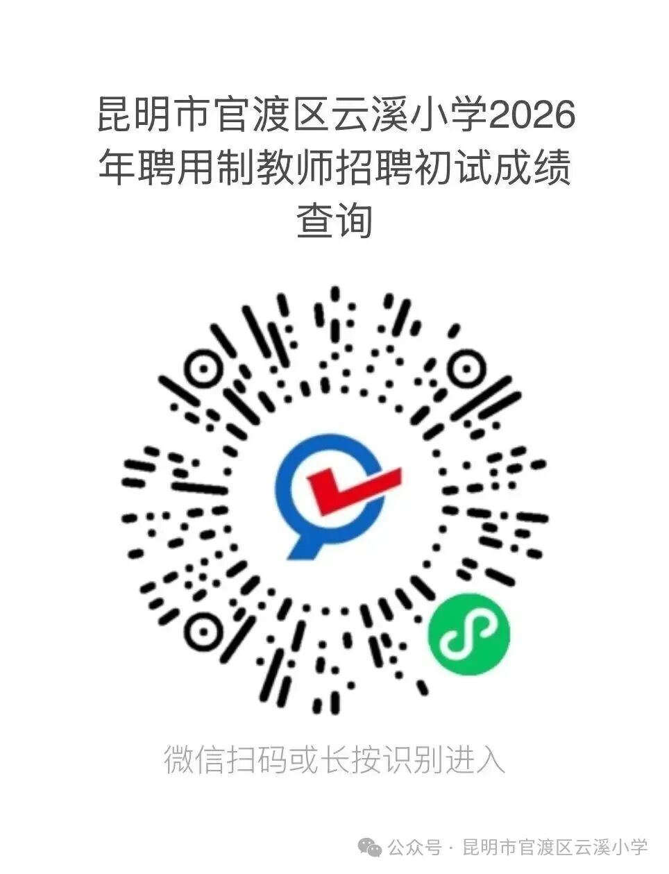 (4)初試成績查詢:2026年3月31日15:00-19:00,可通過微信掃碼或長按識別下方二維碼,輸入姓名及身份證號查詢,各崗位按比例1:3(招聘人數(shù)×3)確定進(jìn)入資格復(fù)審及復(fù)試人員(末位同分者一并進(jìn)入)。