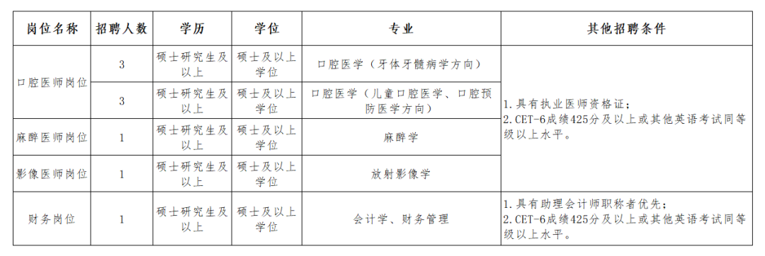 昆明醫(yī)科大學(xué)口腔醫(yī)學(xué)院暨附屬口腔醫(yī)院(云南省口腔醫(yī)院)是集醫(yī)療、教學(xué)、科研、社會服務(wù)為一體的省級口腔??漆t(yī)院,因業(yè)務(wù)發(fā)展需要,面向社會公開招聘工作人員,現(xiàn)將有關(guān)事項公告如下: