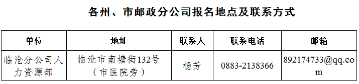 各州、市郵政分公司報名地點、郵箱及聯(lián)系方式詳見附表3