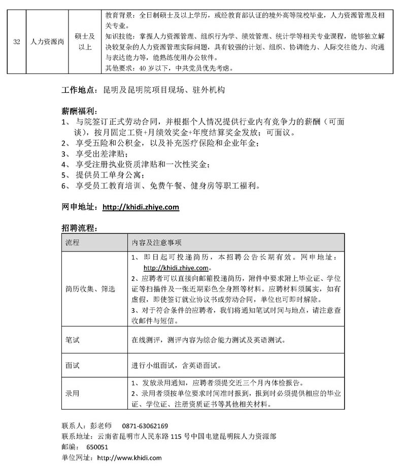 中國電建集團昆明勘測設(shè)計研究院有限公司2017年社會招聘公告
