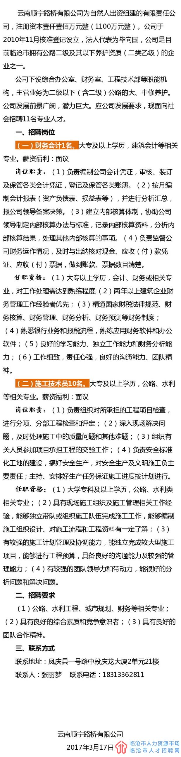 云南順寧路橋有限公司2017年招聘簡(jiǎn)章