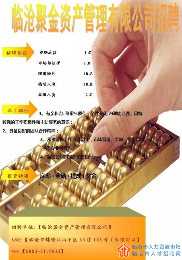 2017年臨滄聚金資產(chǎn)管理有限公司招聘信息