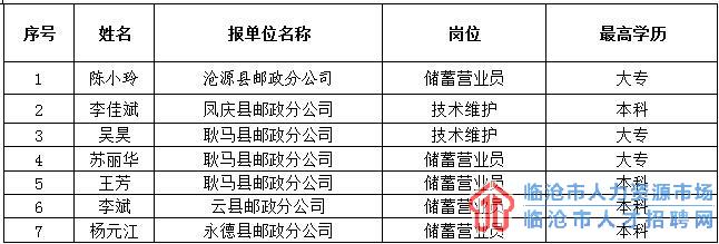 按照“公平、公正、公開”的原則臨滄市郵政分公司接收見習(xí)人員考試已結(jié)束,經(jīng)紀(jì)檢監(jiān)察審定,現(xiàn)將擬接收見習(xí)人員情況進(jìn)行公示如下: