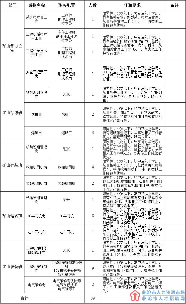 為滿(mǎn)足公司礦山自主經(jīng)營(yíng)生產(chǎn)用人需求,經(jīng)云南水泥建材集團(tuán)有限公司批準(zhǔn),決定向集團(tuán)內(nèi)部和社會(huì)公開(kāi)招聘員工,現(xiàn)將具體招聘事項(xiàng)公告如下: