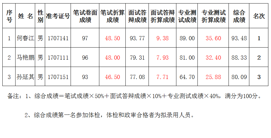 (物理) 2017年教師招聘綜合成績(jī)公示