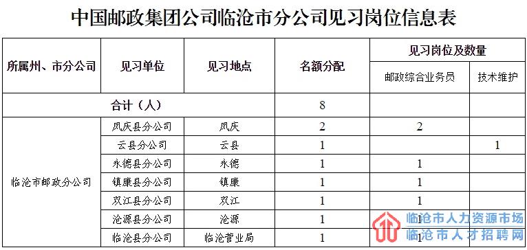 根據(jù)云人社發(fā)[2009]132號(hào)關(guān)于印發(fā)《云南省高校畢業(yè)生見(jiàn)習(xí)工作實(shí)施意見(jiàn)的通知》精神,為幫助高校畢業(yè)生通過(guò)就業(yè)見(jiàn)習(xí)升華理論知識(shí)、增長(zhǎng)實(shí)踐技能、提升就業(yè)能力、盡快實(shí)現(xiàn)就業(yè),中國(guó)郵政集團(tuán)公司臨滄市分公司現(xiàn)面向社會(huì)提供8個(gè)見(jiàn)習(xí)崗位,現(xiàn)將見(jiàn)習(xí)崗位信息公布如下:
